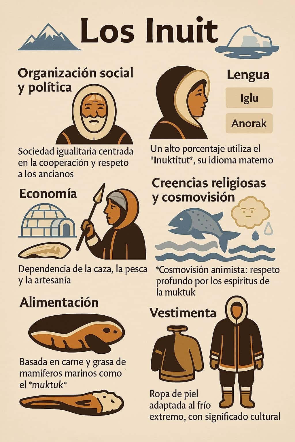 Las narrativas orales, ricas en leyendas y enseñanzas, son pilares de la cultura Inuit. Festividades como el Toonik Tyme, que celebra la llegada de la primavera, son momentos de reunión comunal donde se comparten historias, se realizan danzas tradicionales y se juegan juegos ancestrales como el ajagaq (lanzamiento de dardos). Estos eventos no solo refuerzan la identidad cultural sino que también transmiten valores y conocimientos esenciales a las nuevas generaciones.